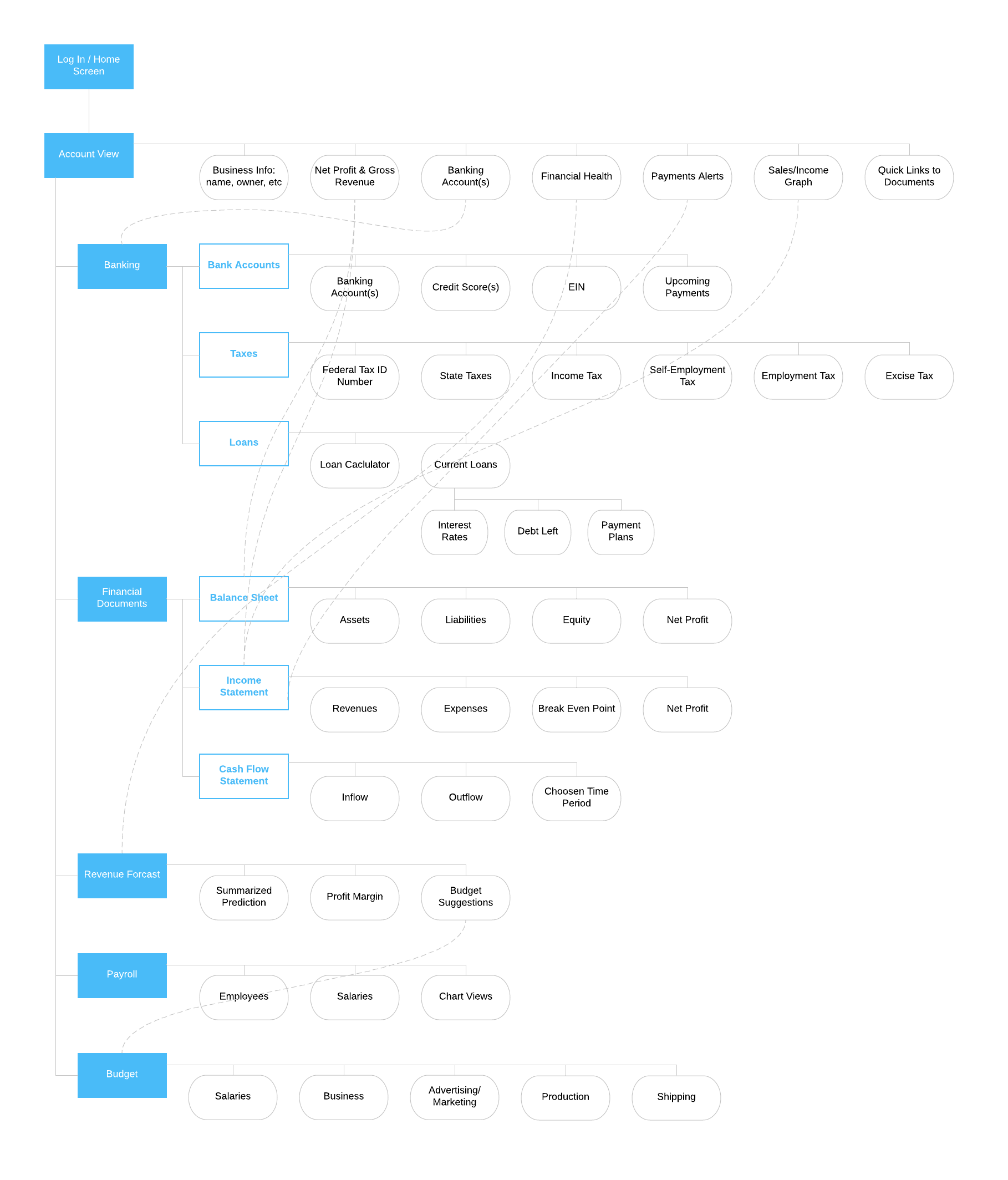 What made this project so challenging and interesting for me was educating myself on the world of business and financing. As a college student I didn't have much of a grasp on how businesses function, what sort of expenses they deal with and how they plan for the future, I honestly didn't even know what a typically person's bank account should look like, so this really forced me to research, plan, and wireframe more than I ever have before.